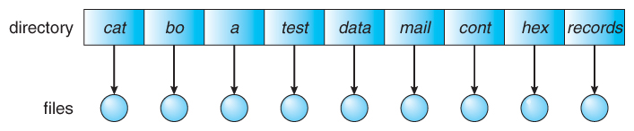 <name, pointer to file header>目录和文件的树形结构:早期的文件系统是扁平的(只有一层目录)